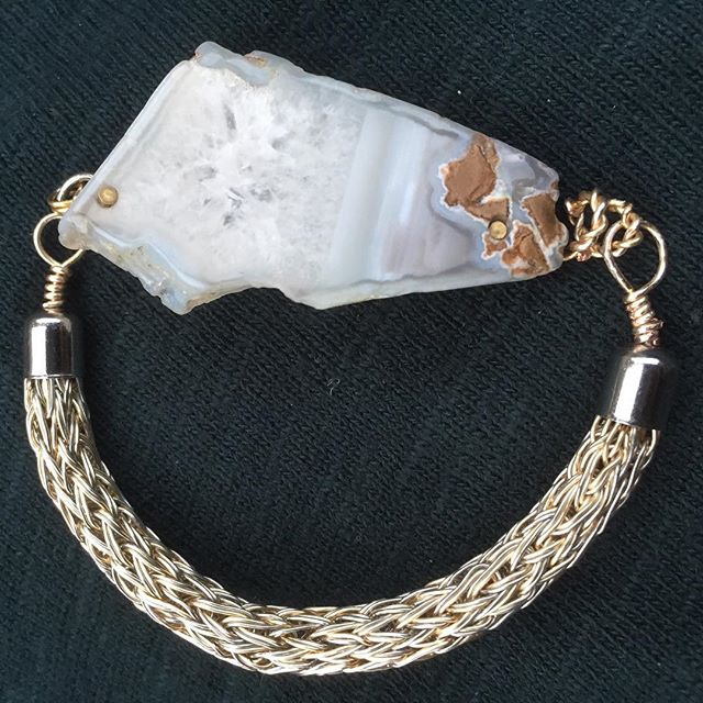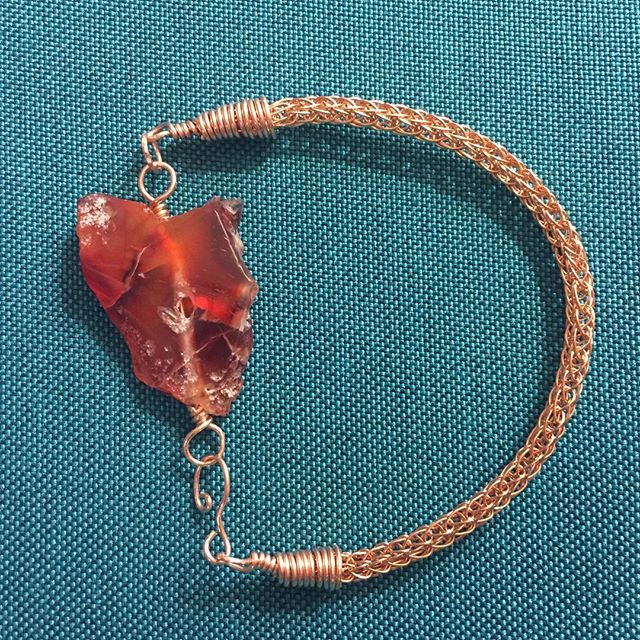 Hoárr – Odin’s Eye Bracelets Single weave bronze wire with heart carnelianSingle weave tinned copper with jasperDual wire copper and silver colored copper wire, hammered copper end caps, geode sliceDual wire, silver and gold colored copper with geode sliceBracelets made with 10th century wire weaving technique, including double wire method. Adding a focal stone really sets these bracelets apart. Like Loading...